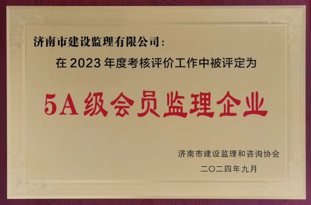 喜報!濟南監(jiān)理榮獲中國工程監(jiān)理AAA級信用企業(yè)及濟南市5A級會員監(jiān)理企業(yè)